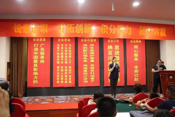 7月28日晚,臨沂大海廣告公司召開第四期快樂會議,董事長許吉海以及大海全體家人參加會議。在會中,各部門負(fù)責(zé)人總結(jié)五、六月份工作中所出現(xiàn)的問題,對接下來的工作進(jìn)行規(guī)劃。